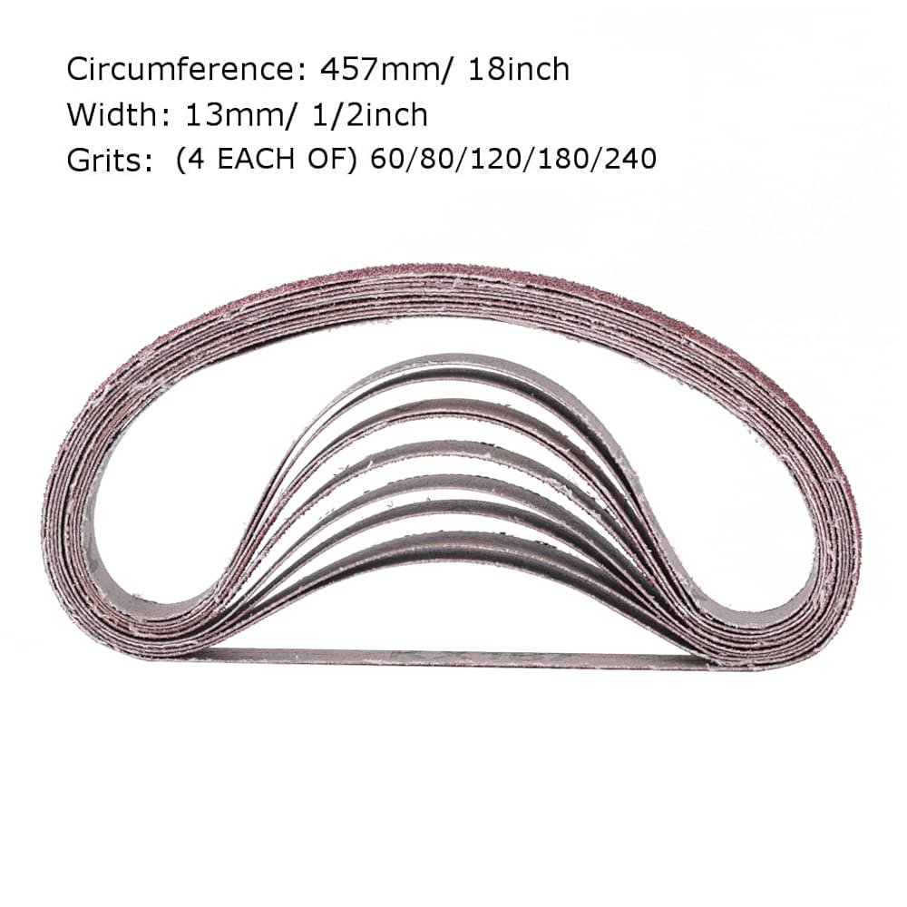 1/2 x 18 Inch Sanding Belts 20 Pack 60 80 120 180 240 grit20 Pack 1/2 Inch x 18 Inch Sanding Belts
