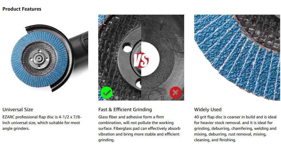 Pair this 40 grit flap disc with our 165 PCS 5 Inch Sanding Discs for complete grinding and finishing solutions.